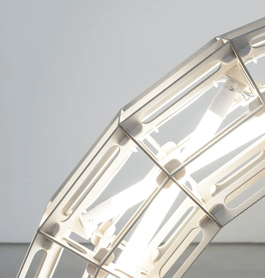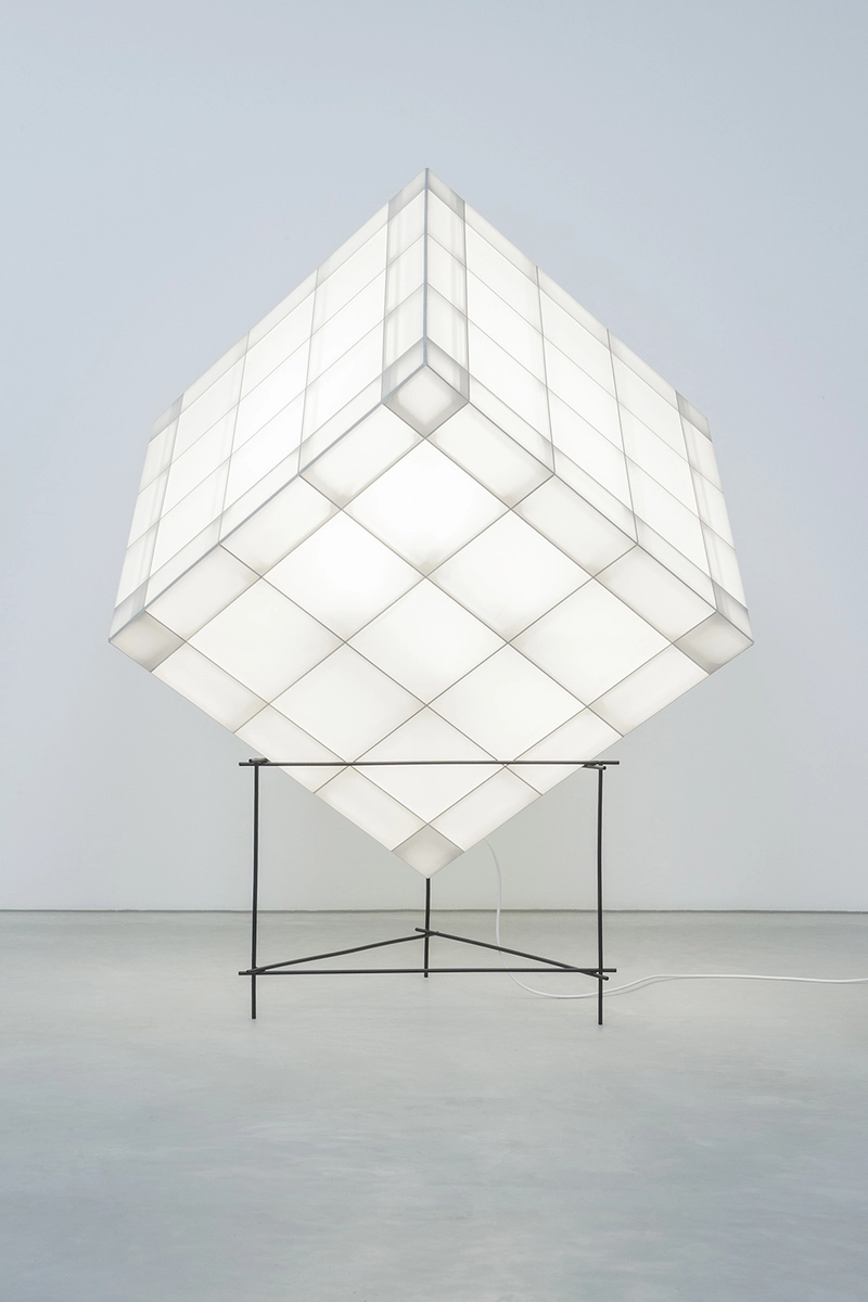 Construidos a partir de armazones ligeros de madera contrachapada ocultos mediante una cubierta textil de poliéster, los tubos LED de su interior proporcionan una luz atractiva y sugerente. Son en realidad una búsqueda experimental de volúmenes abstractos que juegan con el equilibrio o el vacío. Algo a medio camino entre el orden y la improvisación, sutil y rotundo a la vez.