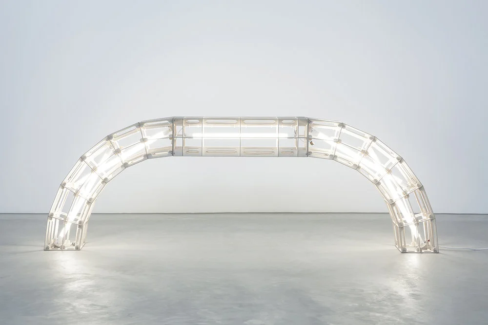 Para este proyecto de iluminación en concreto, denominado Space Frames, han utilizado elementos de construcción arquetípicos, como columnas, placas, arcos y vigas curvadas a modo de contemporáneos arbotantes.