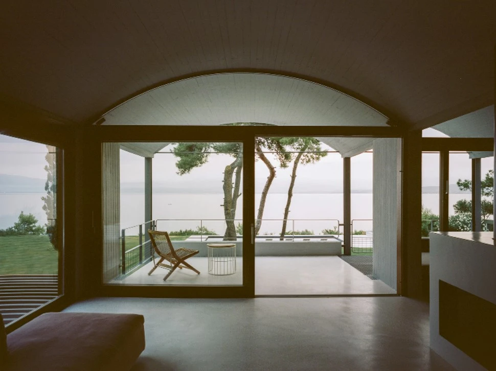 Con espectaculares vistas al mar de Eubea, la villa mediterránea St. Minas House se abre al paisaje en todas direcciones. Concebida como una casa de verano, ocupa una amplia parcela arbolada al norte de Atenas y cuenta con dos grandes arcos de hormigón, que a modo de enormes prismáticos enmarcan la panorámica de la costa.