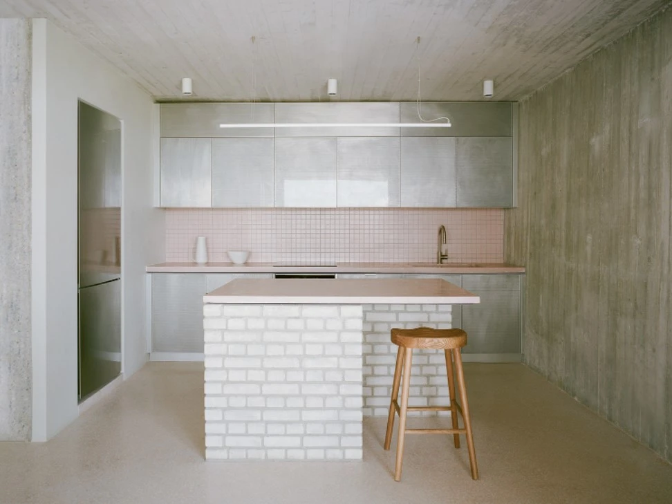 En este proceso de transición se conservaron muchos detalles modernistas, complementándolos con toques divertidos, como la escalera de caracol exterior o los arcos ya mencionados. La mezcla de estilos tiene su continuidad en los materiales empleados: el hormigón de paredes y techos comparte espacios con el ladrillo visto en color blanco; las ventanas y el mobiliario de madera con balaustradas de acero, suelos de terrazo o llamativos armarios de aluminio.