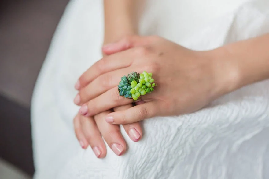 Los resultados son realmente impactantes, como su última colección de joyería «Living jewelry». En este caso, el protagonismo se desplaza de las flores a las plantas suculentas, un medio de expresión ideal ya que aguantan mucho más tiempo sin marchitarse. La diseñadora norteamericana logra combinarlas con un gusto excelente para crear pulseras, collares, anillos, diademas o pendientes.