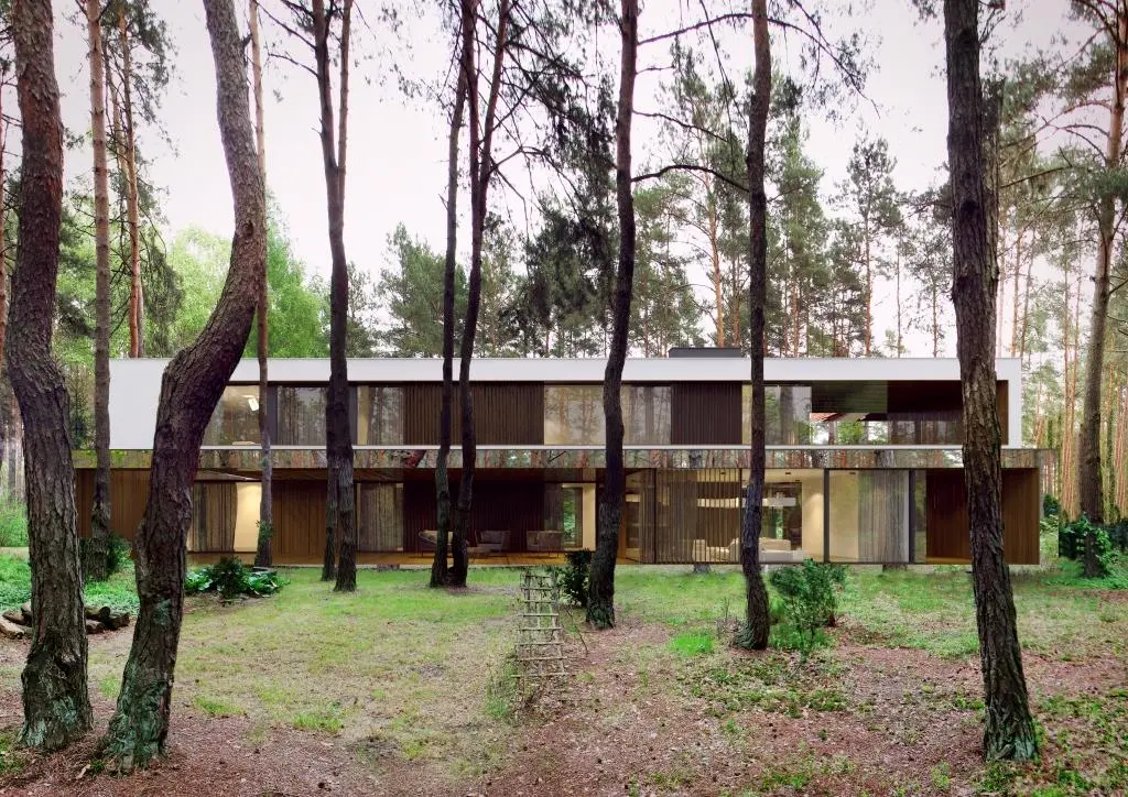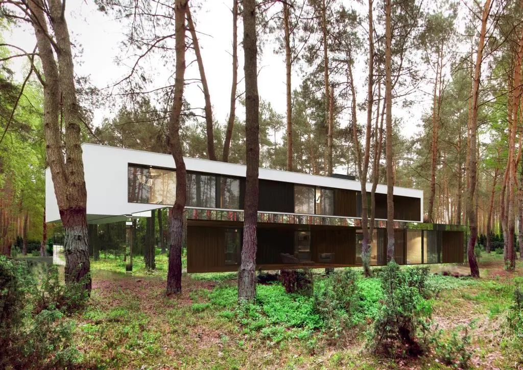 El “Izabelin House” es un concepto de casa espejo de dos pisos que está formado por dos bloques configurados horizontalmente y en perpendicular entre sí. La vivienda tiene entorno a los 400mt2