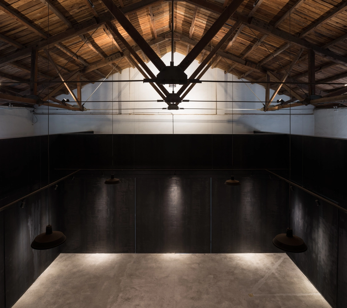 En su remodelación se procuró conservar la estética industrial típica de la época: un inmenso tejado a dos aguas soportado por hileras de vigas de madera y tirantes de hierro. Esta depuración estructural tuvo su continuidad en el acondicionamiento del espacio interior. Para ello, se utilizaron unas elegantes estanterías negras de acero que delimitan las diferentes zonas.