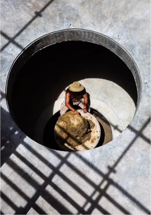 La fluidez resultó primordial a la hora de concebir el Terra Cota Studio, el paso franco de la luz y el aire, su integración armónica con la vegetación, así como la protección de las obras de arte frente a los frecuentes desbordamientos del río.