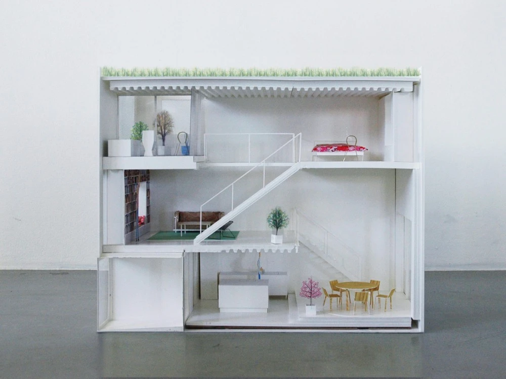 Dada la limitada superficie del terreno, se emplearon distintas soluciones espaciales, como una alternancia de espacios abiertos y confinados, o un juego continuo entre los conceptos de interior y exterior en cada nivel.