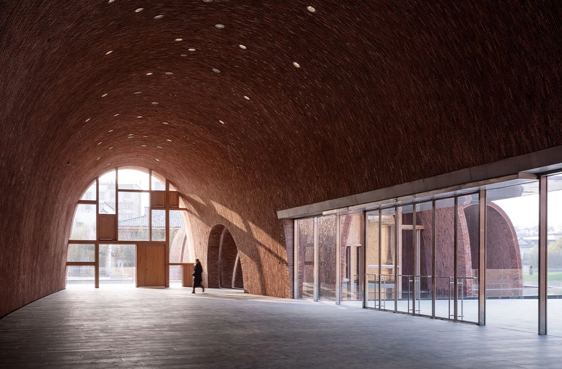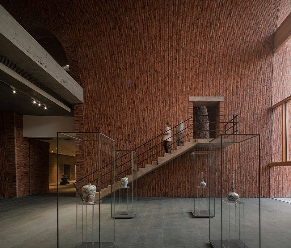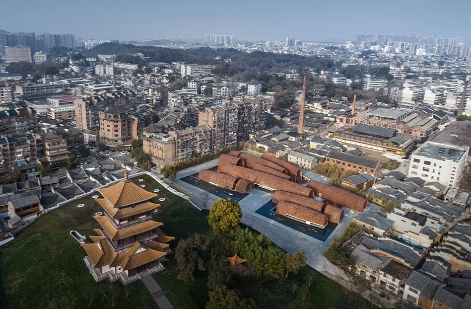 Es junto a las ruinas de los antiguos hornos imperiales, en el centro histórico de la ciudad, donde se encuentra este espectacular Museo del Horno Imperial, proyecto del estudio pekinés Zhu Pei, que rinde homenaje al pasado artesano de la ciudad.