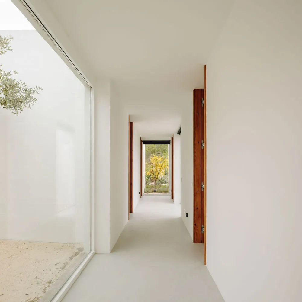 La casa nace como una suma de volúmenes de una sola planta que combina referencias a los pueblos blancos de esta región del Alentejo –incluida la cercana localidad costera de Comporta– con líneas netamente contemporáneas.