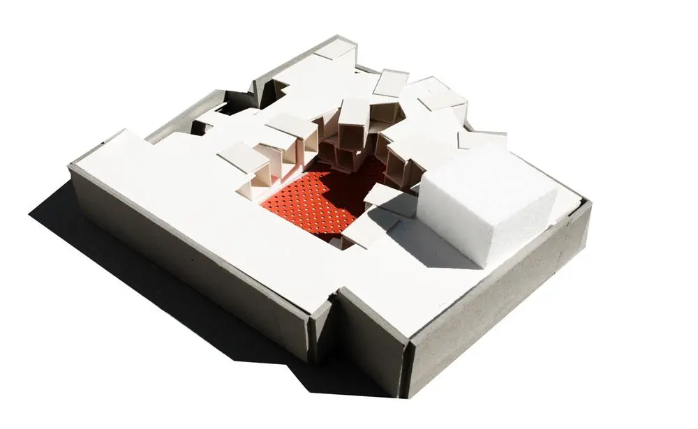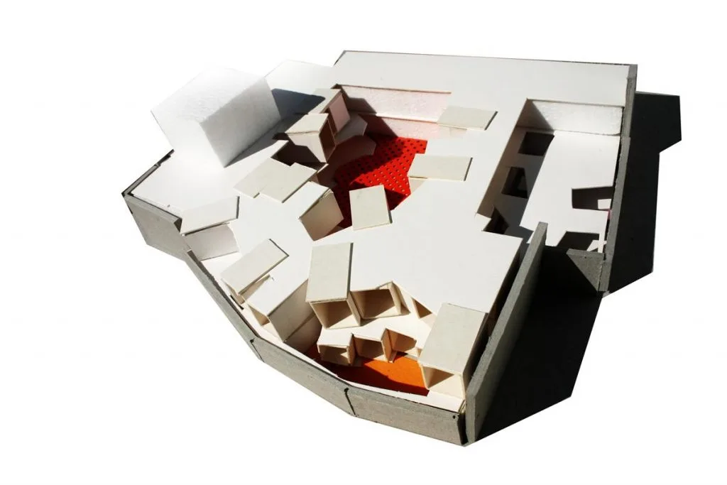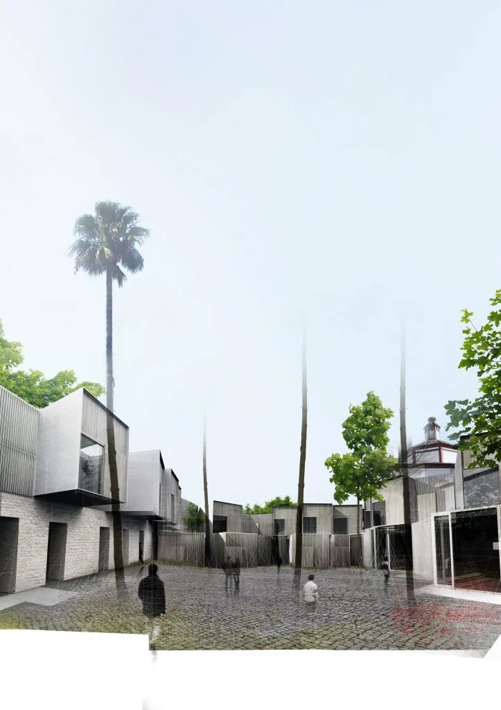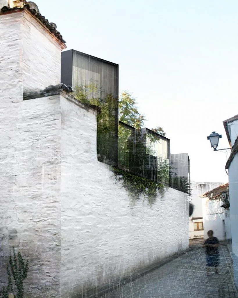 En esta ocasión, presentamos la propuesta del estudio madrileño Amann-Cánovas-Maruri para la creación de una hospedería en la localidad extremeña de Fregenal de la Sierra. El proyecto contempla toda una manzana, que engloba la iglesia y el colegio de los Jesuitas, un patrimonio que data del siglo XVI, aunque las nuevas instalaciones se centran en el patio del conjunto. Aquí, el estudio propone las habitaciones como una serie de elementos de pequeña escala con una volumetría atractiva. Estas piezas, revestidas con materiales naturales como la piedra o la madera y encaladas para integrarlas en el conjunto del pueblo pacense, muestran su modernidad con vuelos y superposiciones, encaramándose a las tapias de la hospedería con ayuda de estructuras metálicas.