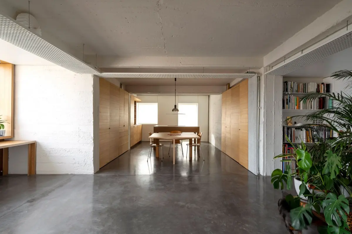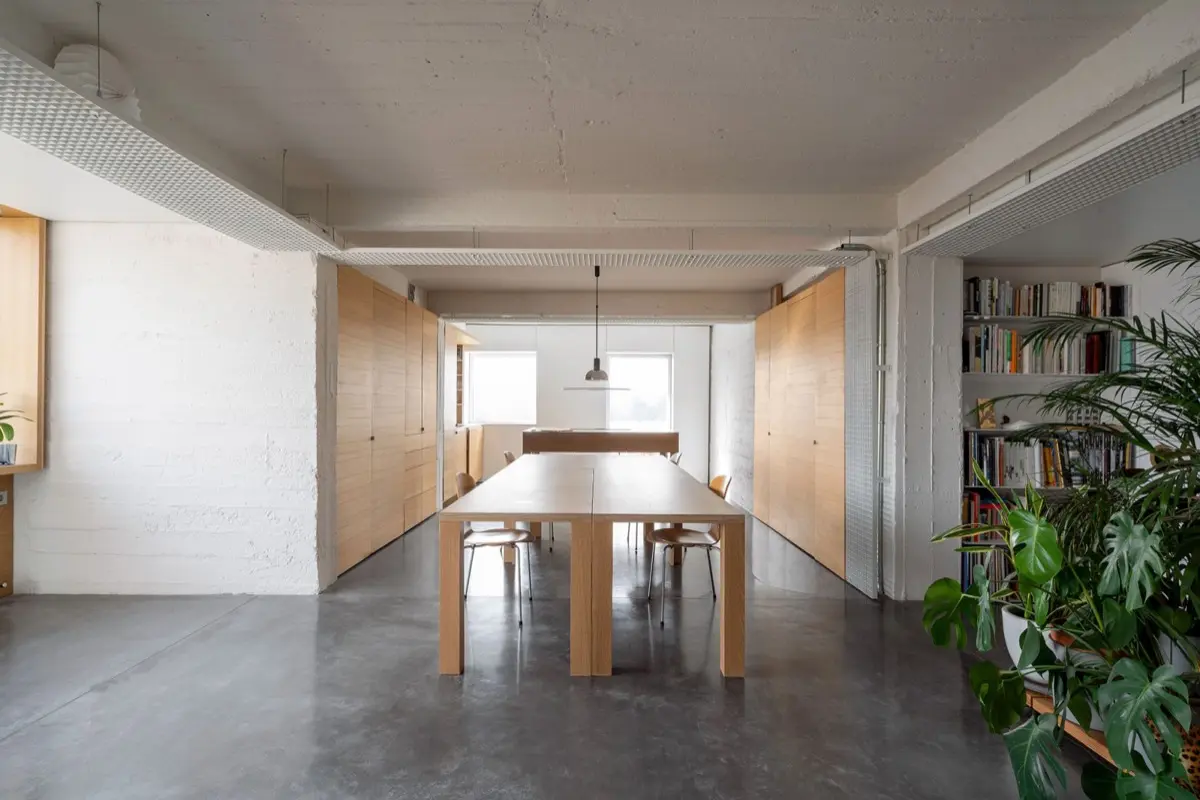 Esta interesantísima reforma se generó con la premisa de permitir la transformación del espacio habitable en función de las necesidades, cambiantes, de cada momento y de cada usuario. La existencia paralela y solapada en nuestras vidas de lo laboral, lo doméstico y lo lúdico en el día a día es también un elemento clave y definidor de este espacio “no binario”.