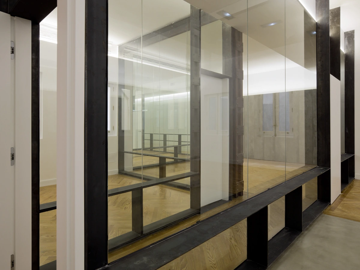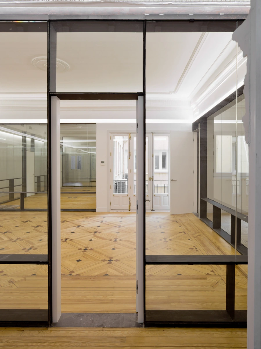 Con una superficie últil aproximada de 300m2, la reforma planteada dejó un interior diáfano, potenciando la luz natural y ejecutando particiones en vídrio que funcionan como membranas de aire que consiguen ordenar el espacio sin fragmentarlo, generando una sensación espacial diferente.