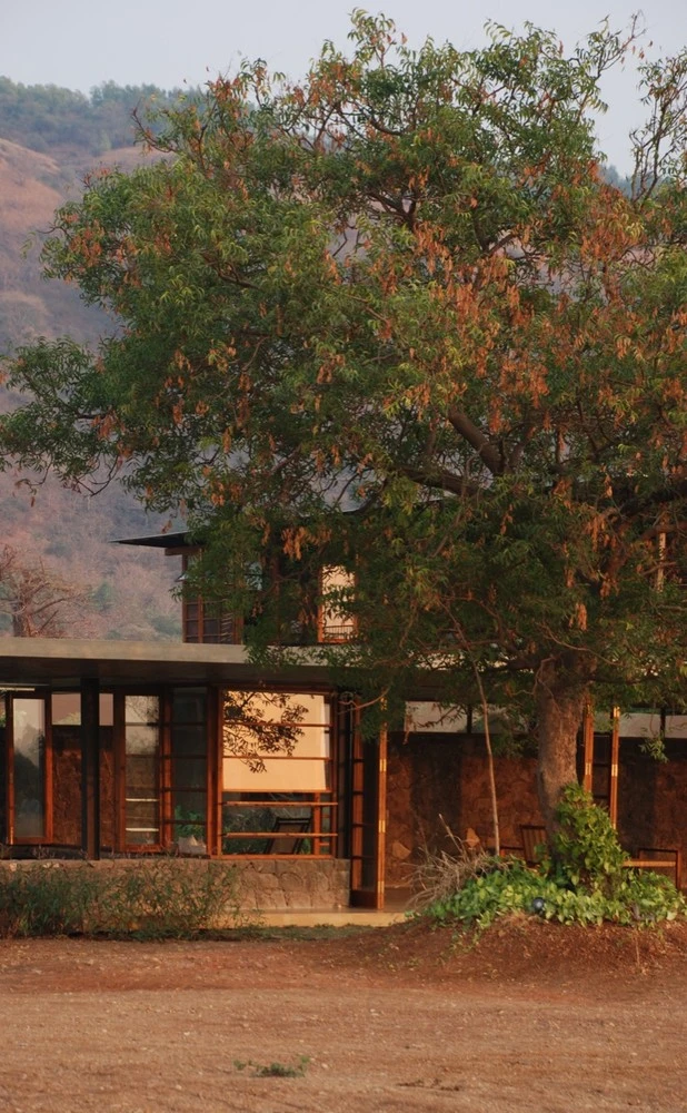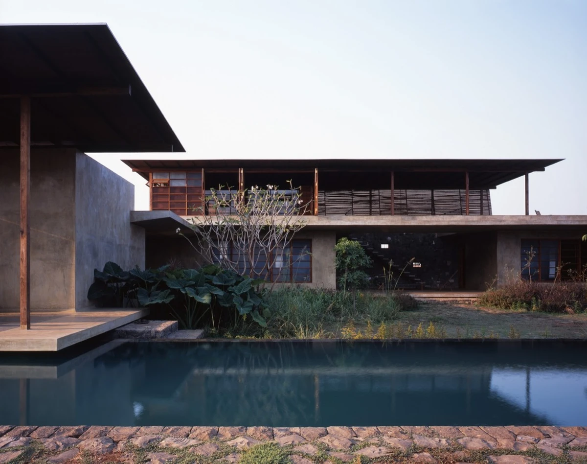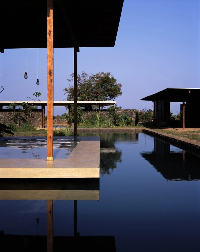 La Utsav House es una vivienda unifamiliar ubicada cerca de la ciudad india de Satirje, en la región central de Maharashtra. En medio de la aridez del paisaje, Bijoy Jain (Bombay, 1965) y su equipo de Studio Mumbai logran crear un oasis agradable en el que abundan el agua y la vegetación.