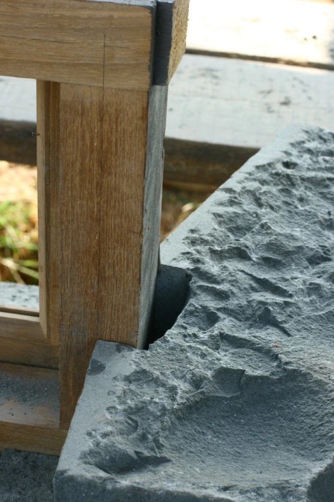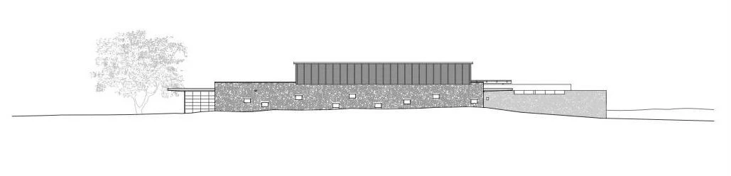 La sobria elegancia del proyecto se inicia con la elección de los materiales. Los muros exteriores de basalto negro, cincelados a la manera tradicional, delimitan la periferia, mientras que unas finas losas de hormigón en voladizo proporcionan sombra en el interior.