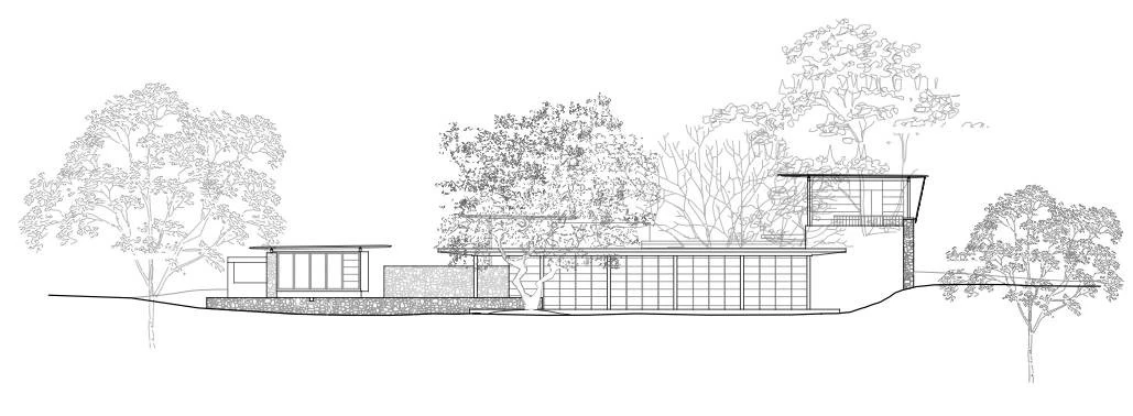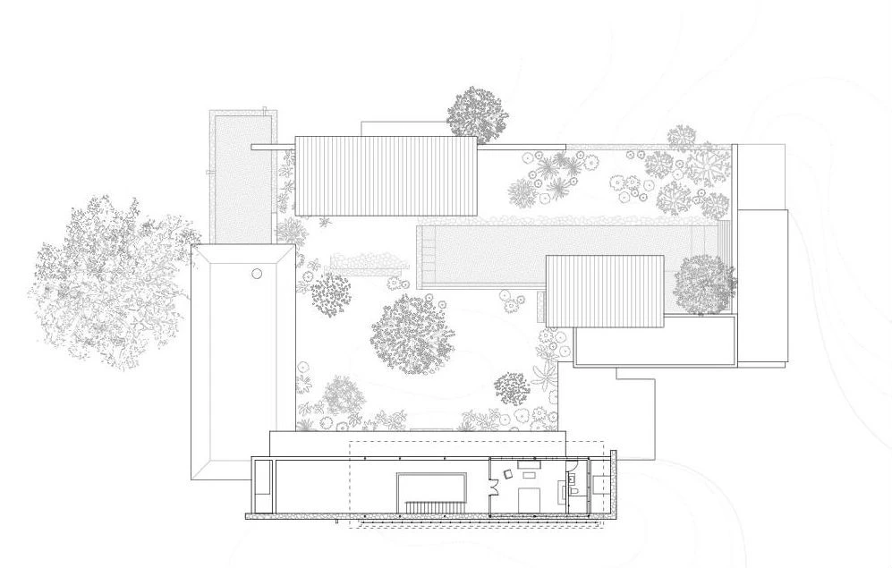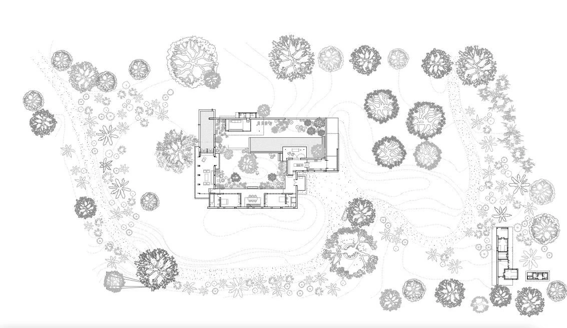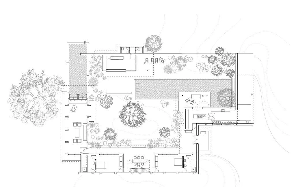 Los distintos pabellones siguen el perímetro de la propiedad, alternando sus alturas para ofrecer buenas vistas desde todos los rincones de la vivienda.