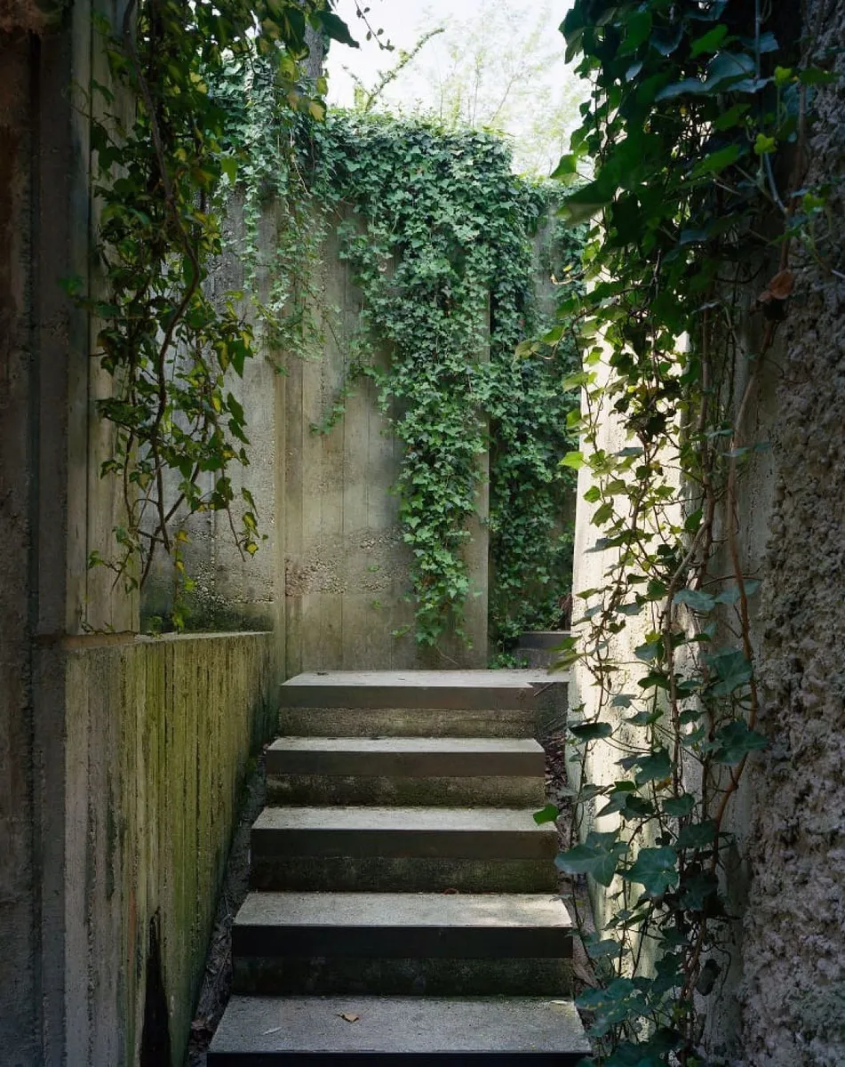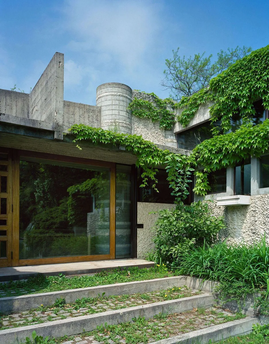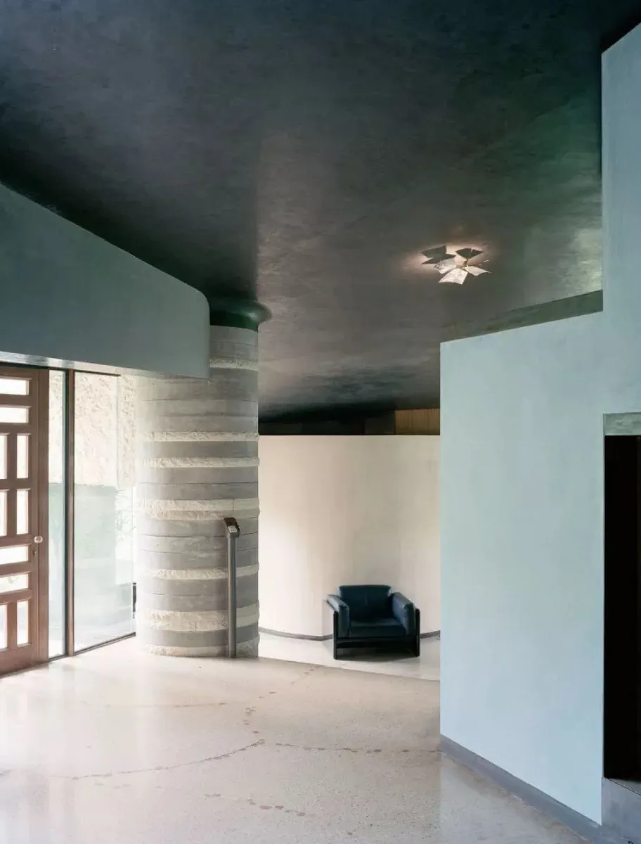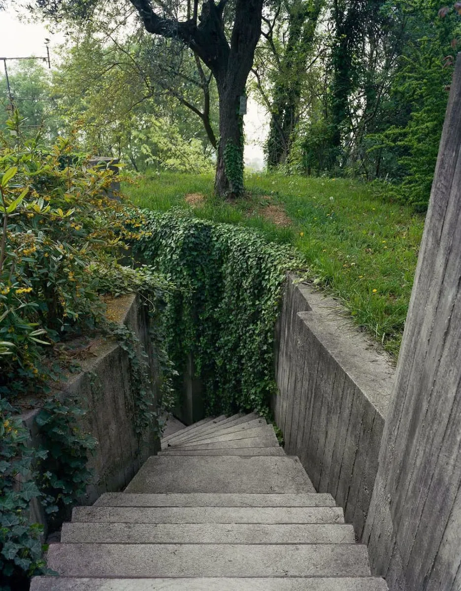 Scarpa responde a una normativa restrictiva que limita la altura visible y obliga a mantener cierta distancia entre edificios. Su solución es descender: la villa se incrusta en el terreno, quedando casi invisible desde ciertos ángulos. Sólo una pequeña fachada da al lago, con muros de hormigón y aberturas irregulares que anuncian sutileza y misterio . En el lado opuesto, una calleta —una grieta en la ladera— introduce luz natural en las estancias semisótano, recuperando la tradición veneciana de los callejones encajonados.