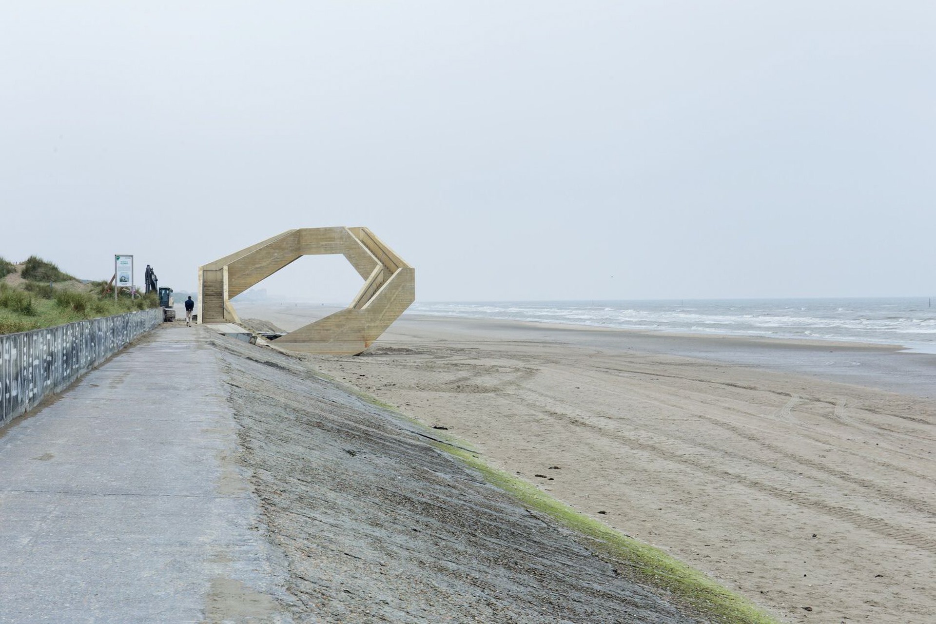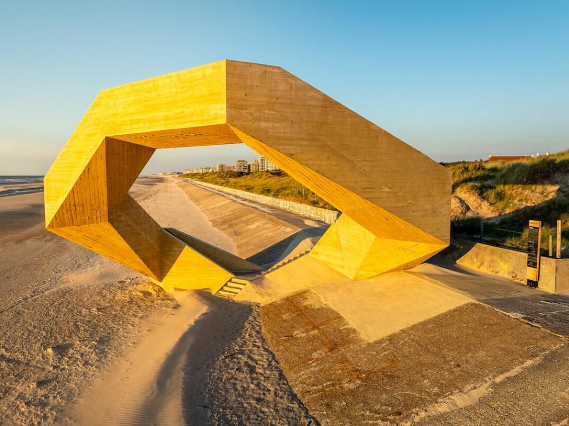 Más que un objeto autónomo, Westerpunt en De Panne del Studio MOTO funciona como una extensión del territorio. Su escala y geometría permiten que se lea tanto como infraestructura pública como intervención paisajística.