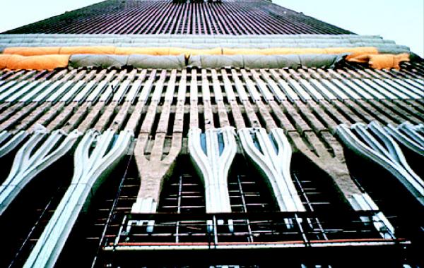 Se utilizaron columnas de carga perimetrales de hierro, de alta resistencia, llamadas celosías Vierendeel, colocadas para formar una pared rígida que virtualmente soportaba toda la carga lateral y compartía la carga de gravedad de las columnas principales. Todo el perímetro, que contenía 59 columnas por lado, fue construido usando “módulos secos”, formados por 3 columnas de tres alturas cada una, unidas entre sí por piezas horizontales. Estos módulos poseían la ventaja de ser anti incendios, pero eran muy débiles mientras no se arriostrasen al resto de la estructura.